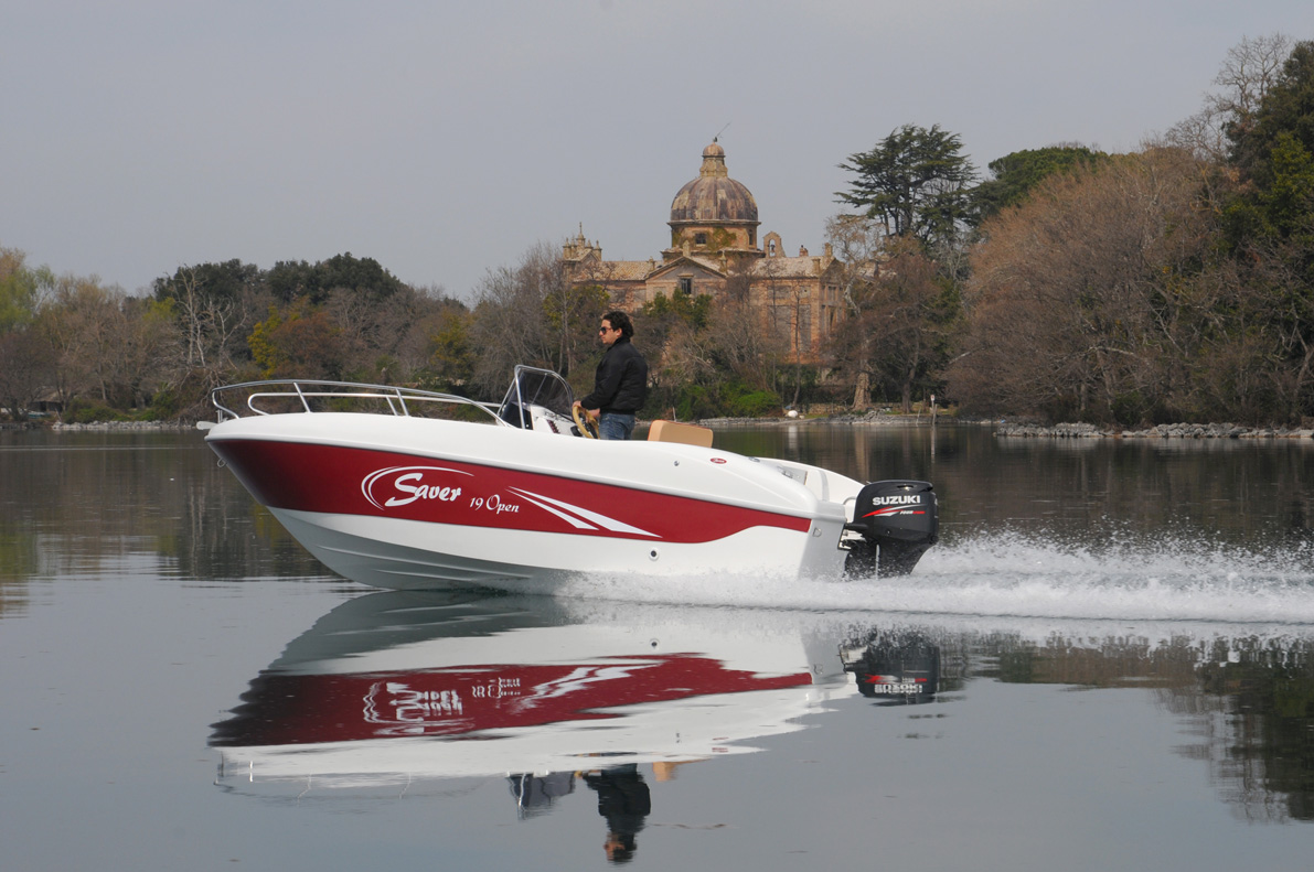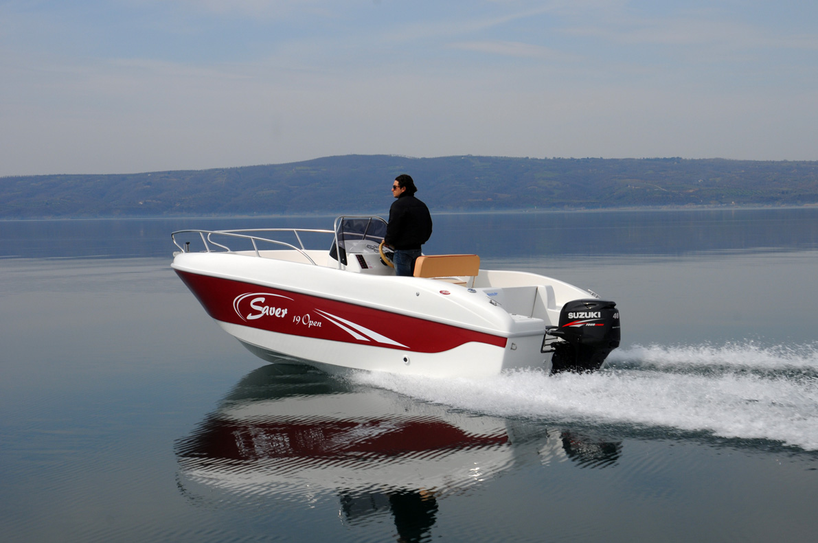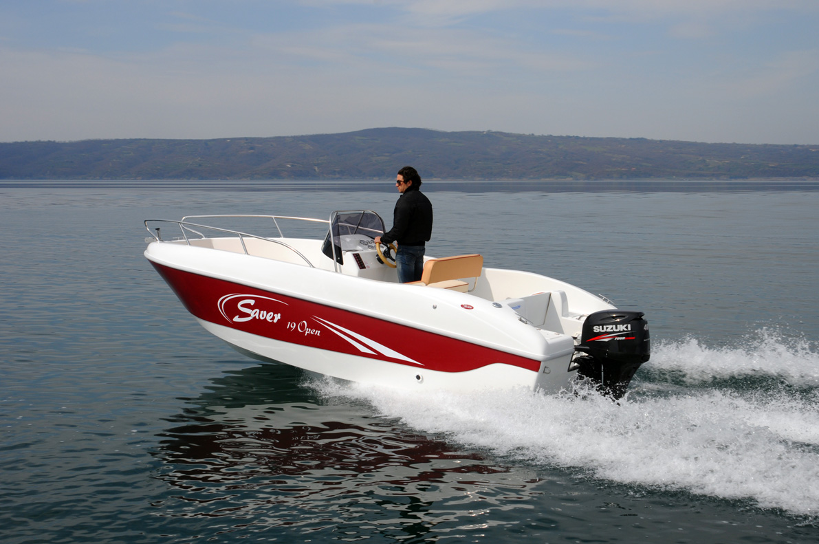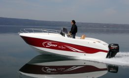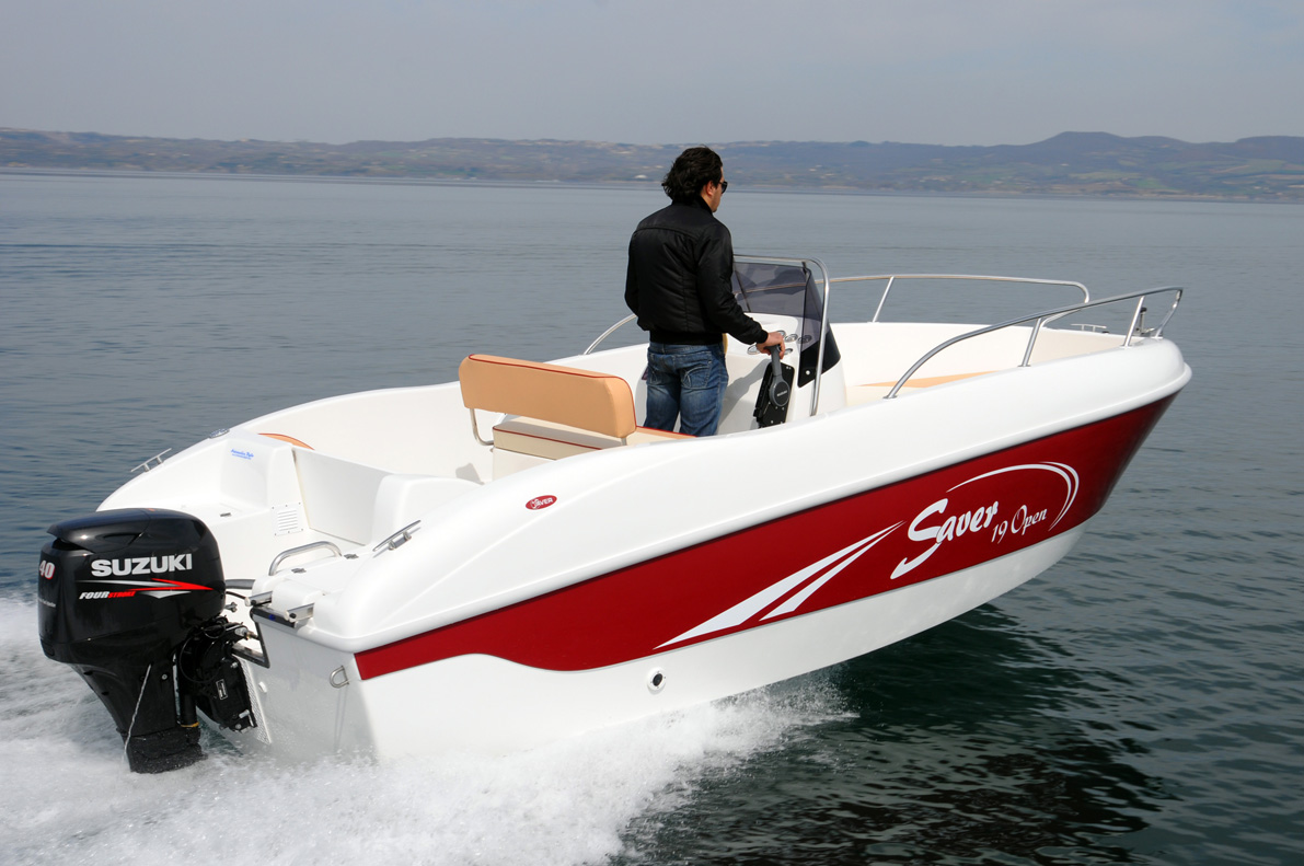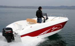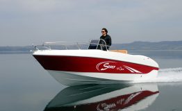 The model is inspired by the 560 Walk Around, from which it differs mainly by the absence of a cabin and its ‘Open’ configuration. Its outboard dimensions guarantee excellent performance even with 40 horsepower engines, although the “boat” is approved to withstand a maximum applicable power of no less than 115 outboard horsepower, and can carry seven people, who are accommodated on board in a deck that offers a stern sofa arranged on the port bow side, with a free passage to the right for boarding people after coming up from the water via the swim ladder, a two-seater sofa for the pilot and co-pilot with a fold-down backrest, and a forward area that can be used as a seating area for other people, counting also on the console-front sofa. The same area can be used as a single sundeck, obtained by adding tops to the fixed area. On the latter there are, among other things, lockers in which safety equipment and possible equipment can be stowed. Other items can also be stowed under the driver’s seat, in the console, in the pockets on the inner bulwarks and inside a small locker/tub aft, next to the anti-flooding cockpit. The central console allows for quick fore/aft transfers on both sides and has shelves on which the engine instruments and any navigation equipment can be placed. The electric winch is an optional extra. The engine that can be installed, strictly outboard, must be long-stemmed.