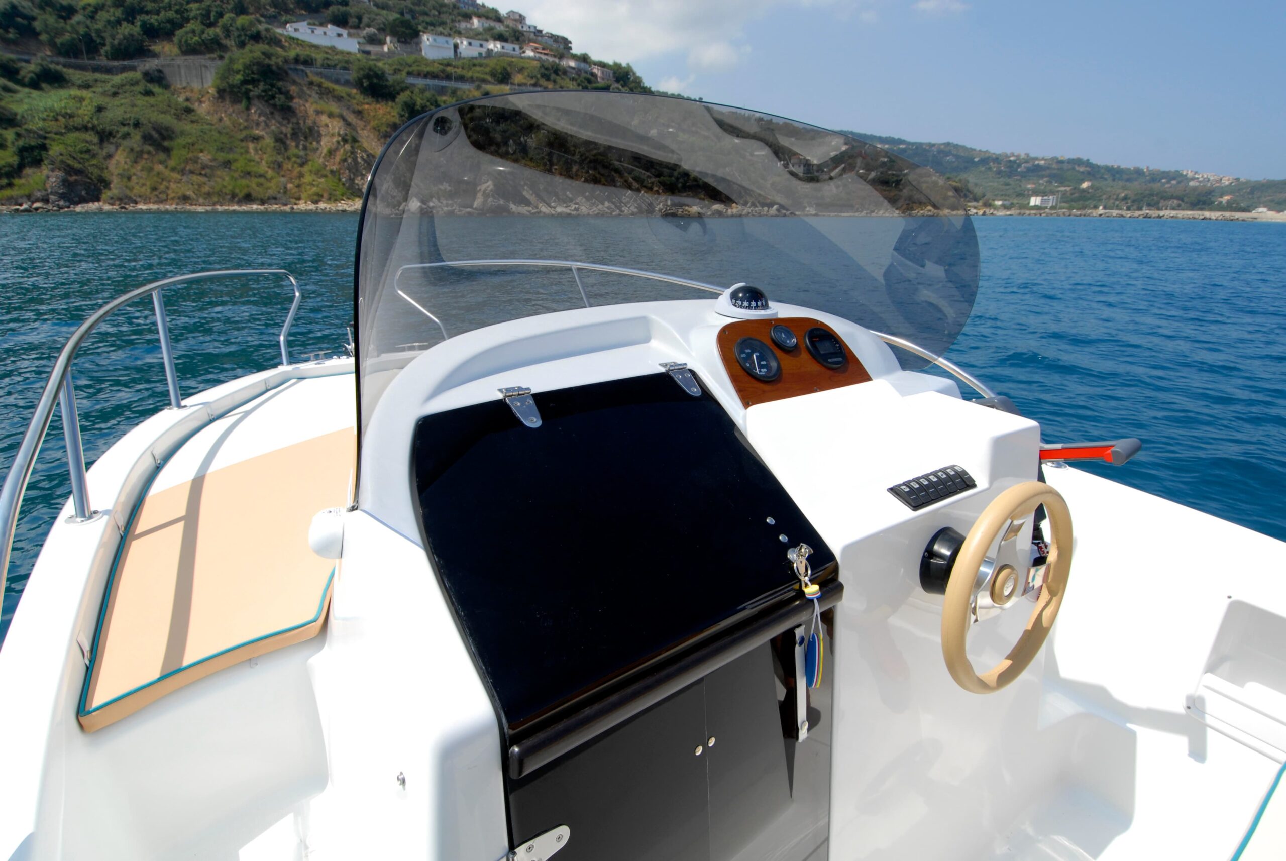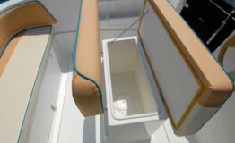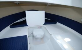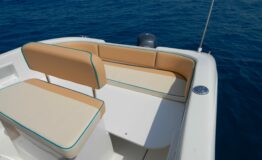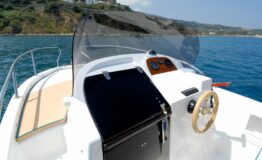 The smallest of the Walkaround family, but no less versatile and less exploitable for your excursions. As with the “big sisters” we have provided a double sundeck, so that everyone can enjoy moments of relaxation both when sailing and when moored or anchored. The performance with an engine of only 40 hp is very interesting, which broadens its possibilities of use even for the “unlicensed”! The 560 WA is ideal boat for those approaching the boating world for the first time, but equally interesting for those who are looking for a hull that is easy to handle both on land and in the water, economical, but with great performance and employment possibilities. The deck perfectly blends the classic spaces of an open with those of a small cabin cruiser, reserving below deck a double bed and the possibility of also adopting a toilet (chemical or marine) below the central completion deck. The forward part of the exterior offers a first permanent sundeck, while aft the second sundeck is modular. Near the engine are two swim platforms of which: one includes a retractable swim ladder, and the other a self-draining locker. Finally, the helm station includes a center console fitted with a transparent windshield, and a double seat with compartment underneath, where on-board equipment or a cooler bag can be stowed.