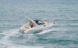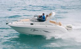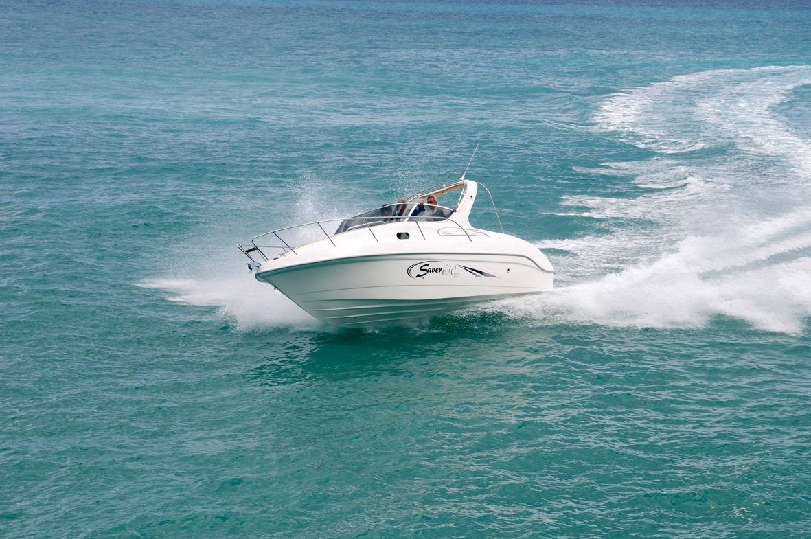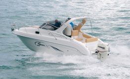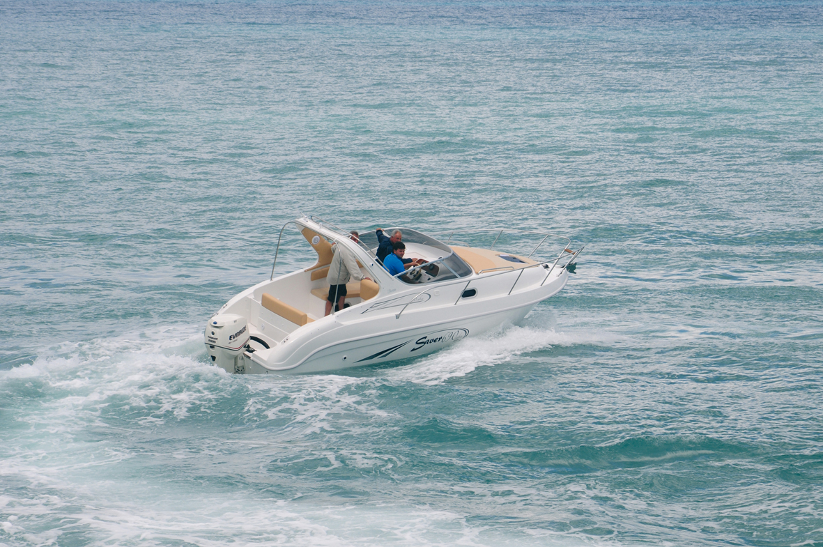 We decided to create this model for those who like to turn sailing into a real pleasure. With the 690 FB Cabin Sport you can tackle challenging seas, sail along the coast or venture out on long-distance crossings. But above all, you will be able to enjoy the sea at all times of the day, both during the day, taking advantage of the large sunbathing areas fore and aft, and at night, with a comfortable cabin where the four of you can cook and sleep. The 690 FB Cabin Sport incorporates many of the successful solutions adopted in the larger model, the Riviera 24. On the outside, it features a double sofa to make sailing comfortable, which can be converted into a dining or chart area. The interior of the cabin is very well designed. Here we find a large central double bed, spotlights for lighting, portholes and a hatch for internal ventilation. But above all, the separate toilet compartment and kitchenette with sink and refrigerator will make you feel completely at ease. A second bed in the stern allows a couple to spend the night and share the pleasure of a holiday at sea. Finally, the hull, as always designed for the sea, guarantees smoothness and safe sailing, regardless of the power you choose!