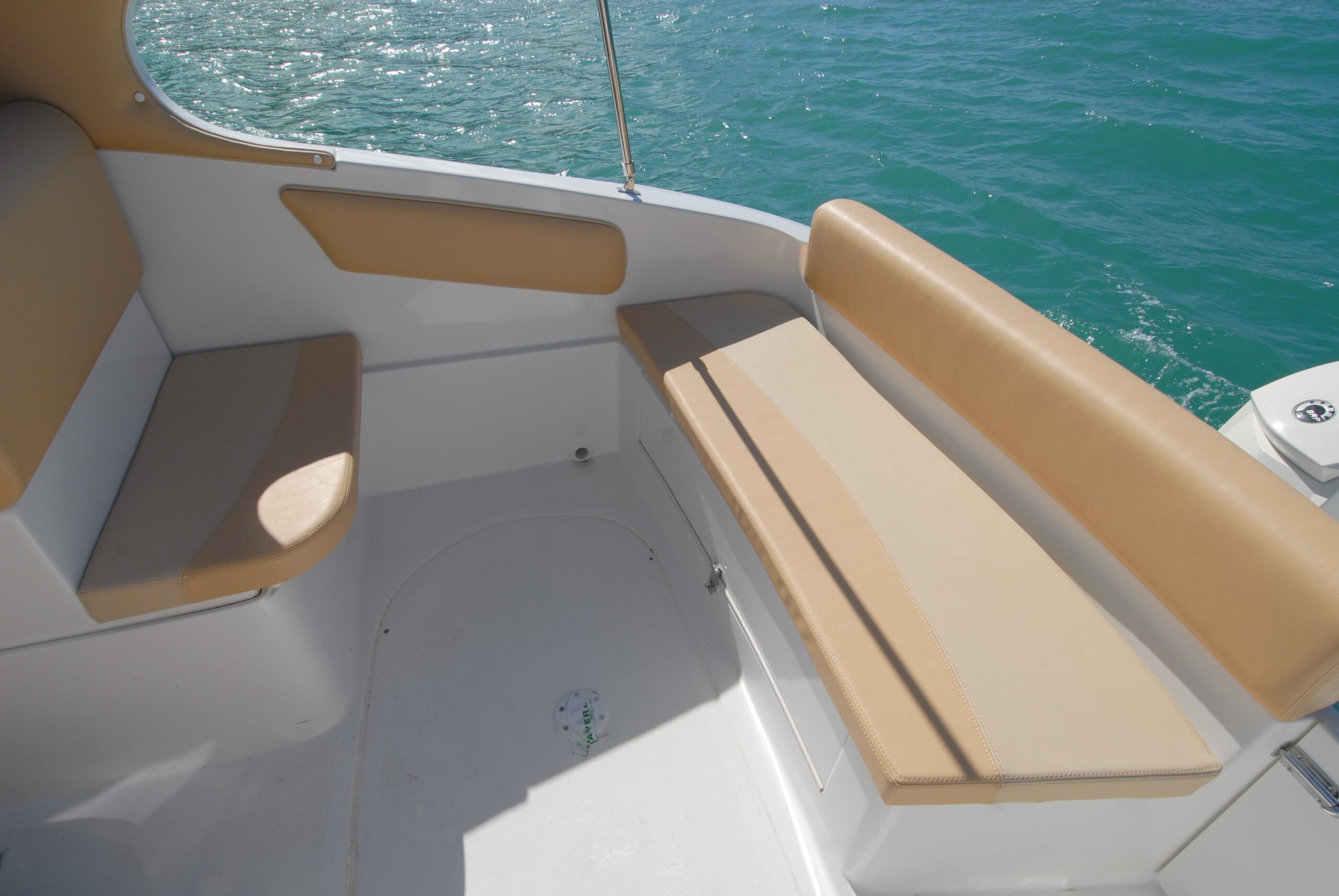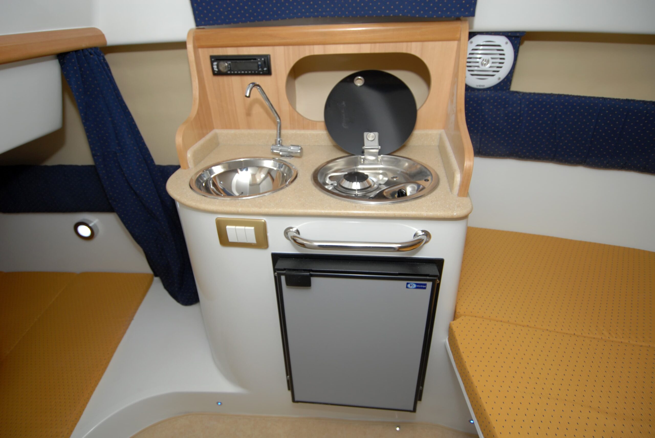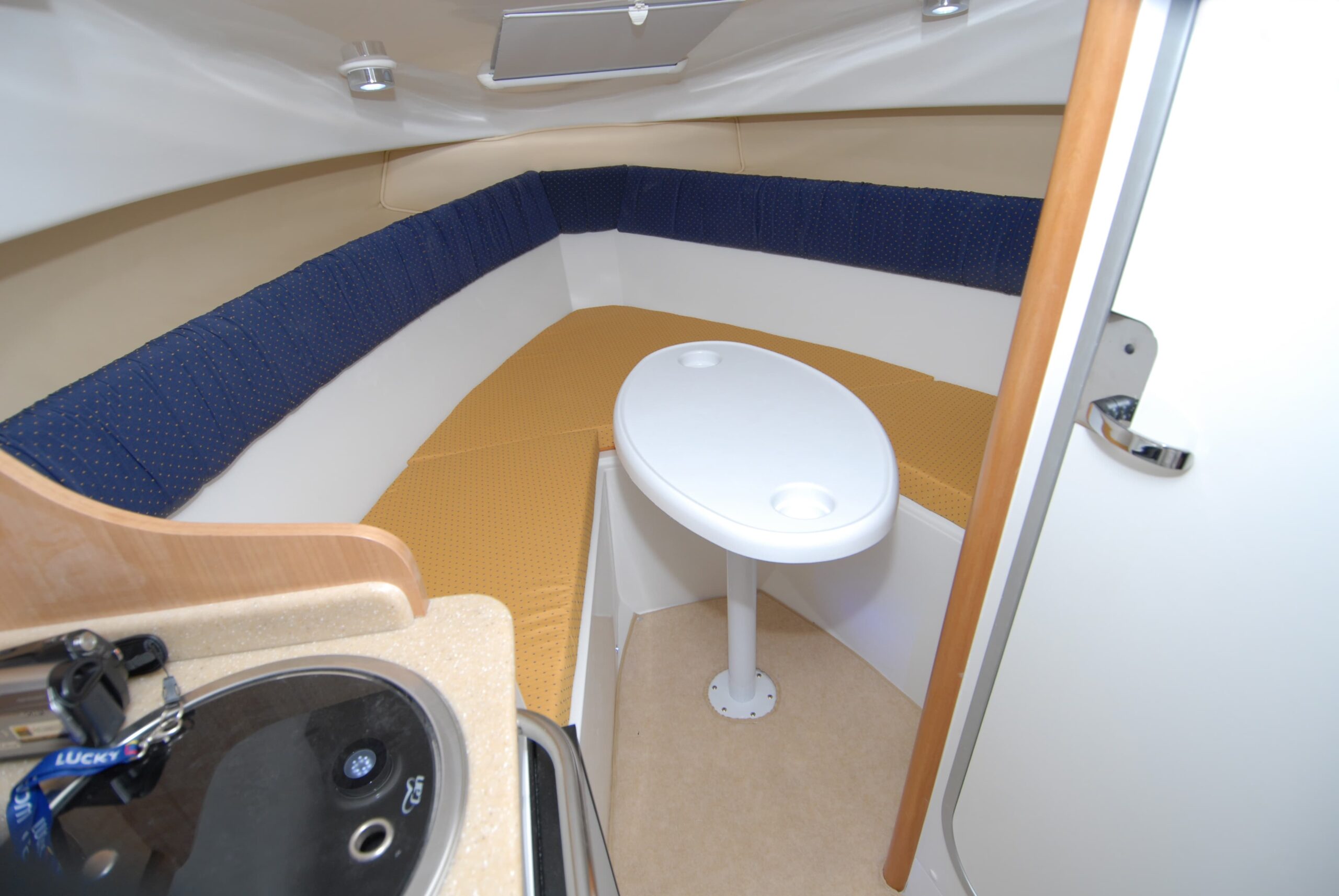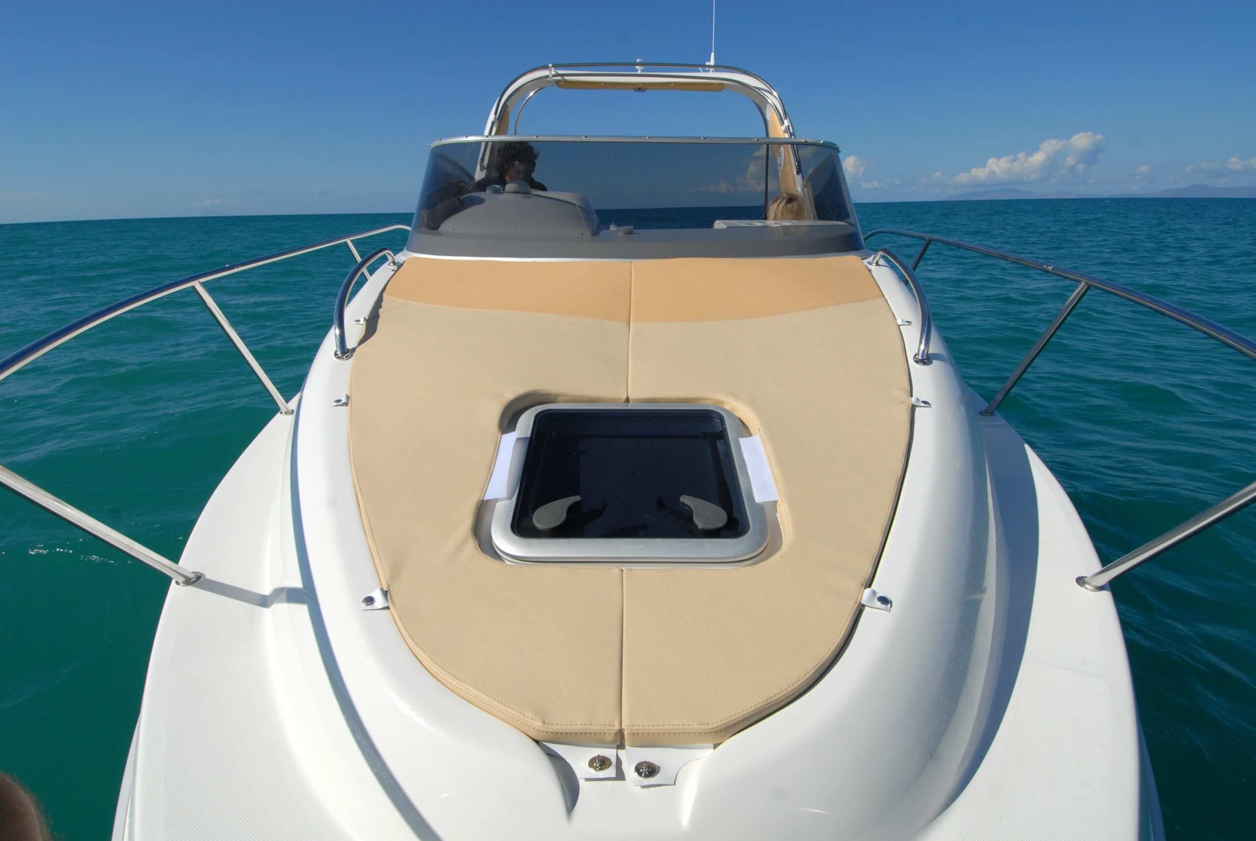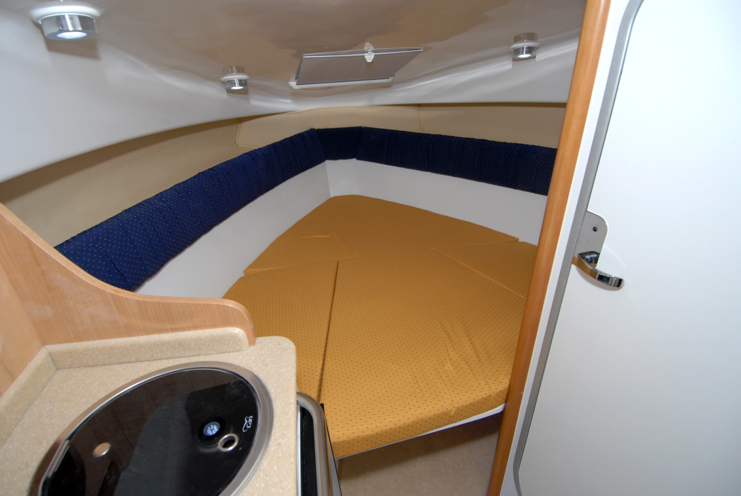 Abbiamo deciso di creare questo modello per chi ama trasformare la navigazione in un vero piacere. Con il 690 FB Cabin Sport potrete affrontare mari impegnativi, navigare lungo la costa o avventurarvi in traversate a lungo raggio. Ma soprattutto potrete godervi il mare in ogni momento della giornata, sia di giorno, approfittando delle ampie zone prendisole a prua e a poppa, sia di notte, con una comoda cabina dove poter cucinare e dormire in quattro. Il 690 FB Cabin Sport incorpora molte delle soluzioni di successo adottate nel modello più grande, il Riviera 24. All’esterno, presenta un divano doppio per rendere confortevole la navigazione, che può essere trasformato in una zona pranzo o di carteggio. L’interno della cabina è molto ben progettato. Qui troviamo un grande letto matrimoniale centrale, faretti per l’illuminazione, oblò e un portello per la ventilazione interna. Ma soprattutto, il vano toilette separato e l’angolo cottura con lavello e frigorifero vi faranno sentire completamente a vostro agio. Un secondo letto a poppa consente di ospitare una coppia di persone per trascorrere la notte e condividere il piacere di una vacanza in mare. Infine, lo scafo, come sempre progettato per il mare, garantisce scorrevolezza e sicurezza di navigazione, indipendentemente dalla potenza scelta!