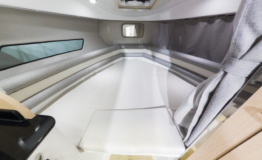 Quasi otto metri di lunghezza che installano esclusivamente motori fuoribordo fino a 350 cavalli complessivi, in soluzione mono o bi-motore. La 750 Cabin nasce per stupire e far innamorare del mare in tutte le sue forme. Linee morbide, dettagli curati, tutto quanto serve a bordo per navigare a medio/largo raggio è stato messo a vostra disposizione, comprese le due aree notte ricavate nella cabina. La prima è una dinette componibile a prua, la seconda è verso poppa, sotto la postazione di guida, per condividere con i figli o una coppia di amici i magici momenti di una navigazione in libertà. La cucina indipendente, così come il locale toilette che include anche la doccia, renderenno la vostra vacanza in mare unica. Di giorno la 750 Cabin è una splendida compagna con cui raggiungere piccole baie, isole o semplicemente ancorarsi al largo a prendere il sole, grazie al solarium fisso di prua, alla chaise longue a fianco del pilota ed alla seconda area con cuscini a poppa, ottenibile con la trasformazione del divano a ‘L’ in un unico piano. In alternativa l’area è dinette con il tavolo in legno, per pranzare in compagnia o semplicemente gustarsi il tramonto sul mare. Veloce anche con un solo motore, la 750 Cabin può con il top di potenza soddisfare anche i palati più esigenti.